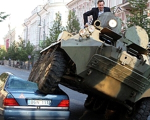 Мэр литовской столицы Артурас Зуокас на бронетранспортере переехал припаркованный в неположенном месте "Мерседес", чтобы призвать таким образом соблюдать правила дорожнего движения.