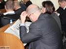 В течение всей сессии начальник управления образования и науки Винницкой облгосадминистрации Игорь Ивасюк подписывал документы. Принес с собой несколько папок с бумагами. От них отвлекался лишь для того, когда необходимо было нажать кнопку на электронной системе для голосования. Большинство других депутатов читали прессу и разглядывали на планшетных компьютерах информационные порталы. В зале работает система "Wi-Fi".
