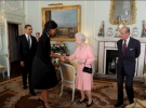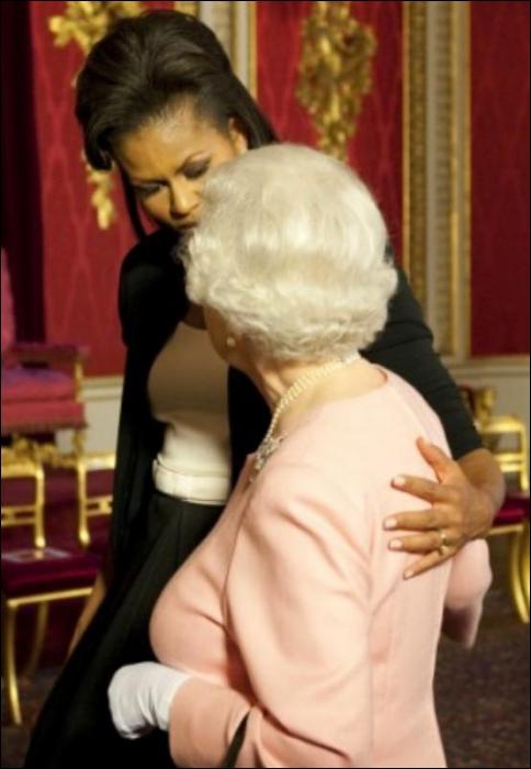 Поскольку они придвинулись ближе и продолжали болтать, королева слегка приобняла Мишель Обаму за спину, а та, в свою очередь, сделала то же самое. На прощание Обама сказала королеве, что "действительно получила удовольствие от этой встречи".