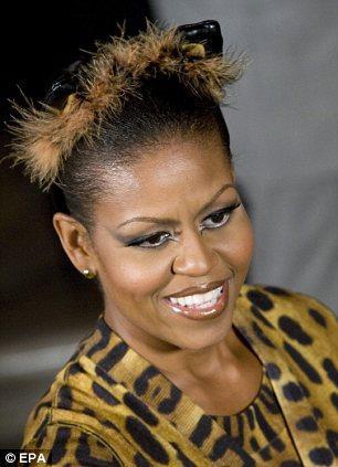 Мишель Обама, наряд которой больше соответствовал духу праздника, была в кофте леопардовой расцветки. Она также надела кошачьи ушки (Женщина-Кошка), подвела черным цветом глаза, волосы собрала в пучок и надела на одну руку множество золотых браслетов.