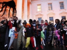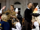 Президент, первая леди и первая бабушка страны (мать Мишель Обамы) Мариан Робинсон, широко улыбаясь, в течение примерно получаса раздавали на ступенях Белого дома сладости - изготовленные в Белом доме конфеты M&Ms, пирожные, и, конечно, сухофрукты.