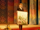 "Я знаю, что Николай Васильевич любит песню, которую все знают, но немного забыли", - заметила она и запела "Одинокая бродит гармонь". Губернатор подарил ей букет белых роз. В конце вечера стало известно, что Ольга Родченко признана победителем 5-го национального конкурса "Благотворитель года".