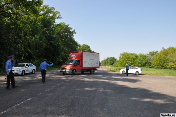 Чтобы избежать транспортного коллапса, работники ГАИ на обоих въездах в село отправляют машины на объездную дорогу.