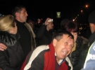 Затем водителя пристегнули наручниками к машине ГАИ. Он оказывал сопротивление попыткам милиционеров увезти его с собой. В итоге водителя силой поместили в машину "скорой" и вместе с несколькими милиционерами увезли с места происшествия.