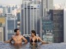 Накануне в Сингапуре открылся элитный отель Marina Bay Sands, который уже прозвали "чудом света". Он состоит из трех 55-этажных башен, которые венчает трехпалубний корабль под названием "Небесный парк", на верхней палубе которого на высоте 200 метров расположился огромный 150-метровый бассейн под открытым небом.