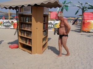 "Книжки собирали по библиотекам членов одесской молодежной организации "Движение Вперед!", которая и создала эту акцию, - рассказал студент Максим, который стал первым библиотекарем на одесском пляже. - Давали то, что не жалко. Здесь в основном произведения о Второй мировой войне, классика, детективы, есть немного фантастики, психология, приключенческие романы. Все люди, которые ходят мимо, удивляются (шкафы стоят на самом входе на пляж - ред.)".