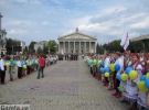 По случаю праздника в центре собралось несколько сотен человек. Многие пришли в вышиванках.