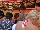 "Больше всего разбирают вязки мягких калачей, берут бублики, рогалики, творожные пончики, завиванцы, маковые пироги, булочки с яблоками, капустой, ягодами. Просят попробовать различные виды хлеба - ржаной, пшеничный, без дрожжей, испеченный на дровах, домашний , с отрубями, с тмином, изюмом ", - говорит Елена Павих, которая торгует хлебными изделиями на фестивале.
