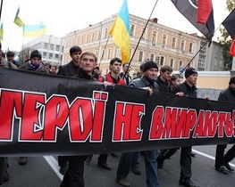 Вечером во вторник около 500 националистов прошли организованной колонной от Монумента независимости по Крещатику в сторону Европейской площади.