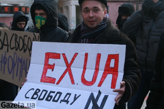 Тернопольская молодежь под красно-черными флагами провела митинг в защиту файлообменника EX.UA под местным управлением милиции. Митингующие заявили, что сайт МВД лег так, что уже не встанет. Пригрозили, что если милиция не возобновит работу файлообменника, проводить будут не такие мирные акции, как эта.