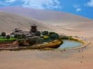 Жители китайского города Дунхуань, который находится в пустыне Гоби, имеют возможность видеть один из самых прекрасных оазисов в мире. Это озеро Полумесяца, которое окружено сочной зеленой травой. Оно находится всего в 6 километрах от города.