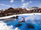 В Колорадо, США, состоялось ежегодное собрание скиммеров. По условиям конкурса, побеждает тот, кто как можно дольше продержится на доске на поверхности небольшого искусственного пруда. "Гранд-финал" прошел на популярном горнолыжном курорте.
