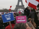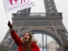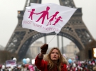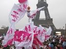 Против манифестантов выступили обосновавшиеся во Франции украинские активистки FEMEN, появившиеся на их пути с голым торсом и в имитации монашеских головных уборов. О своей акции, по данным агентства, феминистки властям заранее не сообщили.