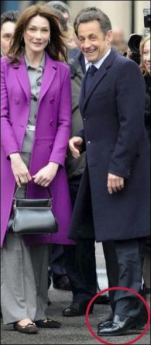В честь иностранных гостей первая леди Франции Карла Бруни и Саркози устроили торжественный обед в Елисейском дворце. На приеме присутствовали ливанский лидер и его супруга, Вафа Сулейман, экс-министр юстиции Франции, арабка по происхождению, Рашида Дати , а также другие высокопоставленные политики Франции и Ливана. Все участники вечера соблюли дресс-код: дамы были в вечерних платьях, а мужчины в смокингах. Однако Карла Бруни немного отступила от правил этикета. Первая леди Франции одела вместо элегантных лодочек туфли на низком каблуке. А все из-за Саркози. Чтобы не казаться выше своего супруга бывшая модель на все приемы одевает балетки. И максимум, что может позволить себе Карла, - это маленькие каблучки. Всем известно, что рост лидера Франции оставляет желать лучшего. У Николя всегда были комплексы по поводу своих 165 см. Ведь не зря он стал носить особенные туфли итальянского производства с секретом, которые увеличивают рост человека на 9 см. Но даже прибегая к таким уловкам, Саркози был все равно ниже своей третьей супруги, которая имеет рост 176 см. Поэтому во время фотографирования он становился на цыпочки или немного выходил на передний план.Но вот незадача. Во время упомянутого выше приема в Елисейском дворце Саркози предстал перед фотографами почти одного роста с Бруни. Вырасти он не мог, в силу своего возраста, а вот туфли с большей платформой одеть вполне способен. По видимому у Николя относительно своего роста большие комплексы, чем думали все, раз он столько усилий прилагает к тому, чтобы казаться выше. Следует отметить, что у звезд-мужчин тенденция к обуви с высоким каблуком или со стелькой тоже заметна. Так, поклонниками такой обуви являются Том Круз и сэр Элтон Джон.