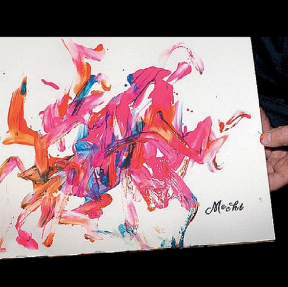 Первой работой самобытного живописца стал "натюрморт" - Мечи тянулся вымазанной разноцветной краской мордой к банану, моркови и картофелю, уложенным на полотне.