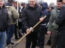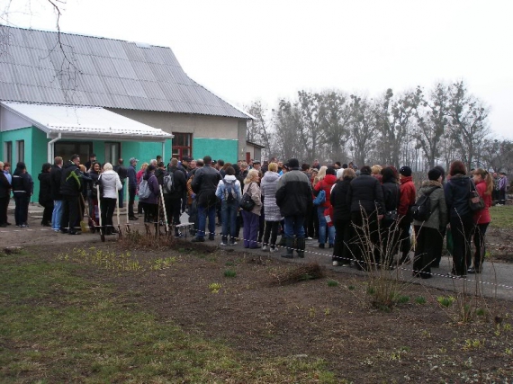 Около 9.30 в селе Дорожное Винницкого района собрались 130 человек. Из них 40 - работники и родители из Центра социально-психологической реабилитации детей и молодежи с функциональными возможностями "Горизонт", 8 - с "Винницысадвинпрома". Остальные - с Винницкого облсовета и облдержадминстарции и Винницкого райсовета и райгосадминистрации. Под общежитие Центра привезли 1500 граба, 20 туй и 80 плодовых деревьев. Лопаты с новыми ручками в ряд загнали в почву. У них - несколько ведер для поливки. После короткой речи все взялись за дело. Чиновники одели рабочие перчатки и разошлись по периметру. Председатель Винницкой облгосадминистрации широко размахнулся лопатой, глубоко вгонял ее в землю и в считанные минуты выкопал первую углубление для туи.