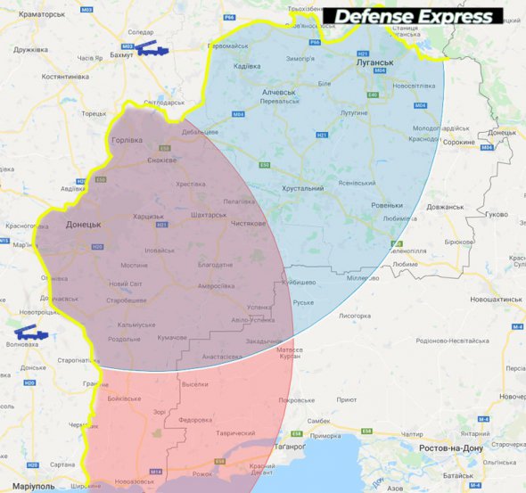 В Defense Express составили карту, на которой демонстрируется зона покрытия ракеты: