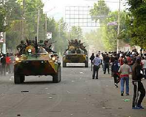 В пятницу утром в город прибыли дополнительные подразделения силовых структур. Военные передвигались на трех БМП и нескольких грузовых автомобилях. Кроме того, в колоне двигались два БТР и тяжелая бронетехника. Решение о введении дополнительных подразделений было принято временным правительством Киргизии.