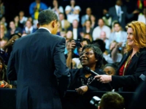 61-летняя Генриетта Хьюз обратилась к американскому президенту во время его выступления в городе Форт-Майерс, Флорида, во вторник. Она рассказала Обаме, что ее сын потерял работу и не смог больше платить за жилье, после чего они оказались на улице и были вынуждены с тех пор жить в собственной машине. В ответ Обама поцеловал женщину в щеку и пообещал помочь ей, заметив, правда, что "таких людей как она очень много".