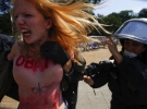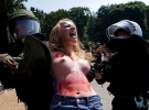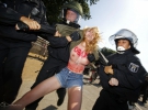 Как сообщалось ранее, полуобнаженные активистки движения FEMEN в полночь с 17 на 18 июня устроили акцию протеста против политики Президента Беларуси Александра Лукашенко, прибывшего вечером 17 июня в Киев с визитом.
