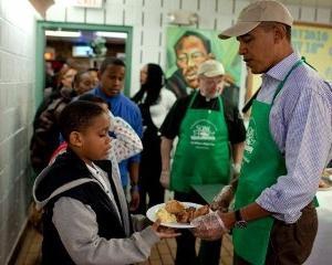Сам президент в понедельник вместе с семьей посетил одну из социальных организаций Вашингтона, где помогал готовить обед для неимущих, передает ИТАР-ТАСС.