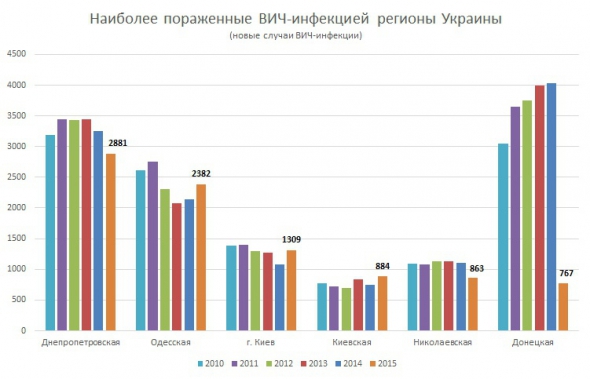 В Украине, по данным Украинского центра контроля за социальноопасными заболеваниями МОЗ Украины, за 6 месяцев 2016 года зарегистрировали 7 612 новых случаев ВИЧ-инфекции. Из них - 1 365 детей до 14 лет. От СПИДа умерли 39 887 человек. Наиболее пораженные ВИЧ-инфекцией регионы – Днепропетровская, Донецкая, Киевская, Николаевская и Одесская области, а также Киев.