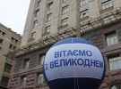 Сегодня в Киеве праздновали Пасху: под дождем играл военный оркестр, пели народные песни и показали огромную писанку.