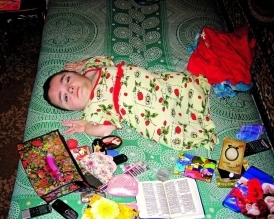 "Каждое утро читаю "Отче наш". Глянула в окно, там не сидит воробей на ветке. Сегодня его не было. Включила мобилку, потому что на ночь выключаю, чтобы меньше батарея садилась. Пришла баба Люба и стала убирать постель, складывать одеяло. Мама попорала скот и зашла в мою комнату. Помогла мне сходить в туалет. Потом принесла вареную картошку с солеными помидорами, мое любимое - хлеб с маслом и компот. Поставила еду на стул перед диваном. Я понемногу начала расшатываться, напрягая все мышцы, и передвинулась на спине ближе к стулу. Сама расстелила правой рукой беленькую платок окружностю головы, чтобы на диван ничего не полилось. Набираю в ложку немного, ем медленно. Компот пью через трубочку. Умею есть очень аккуратно, чтобы кроха не упала. Меня за это дедушка хвалит. А мама бывает сердится и кричит: "Ешь быстрее, потому всьо остынет". Но я умею ее поставить на место. Даю ей порку. У нее нет мужа, то я ей вместо него. Требую, чтобы везде была чистота. Чтобы моя одежда была чистенькая и аккуратно сложенный в шкафу. Люблю порядок", - рассказала девушка.