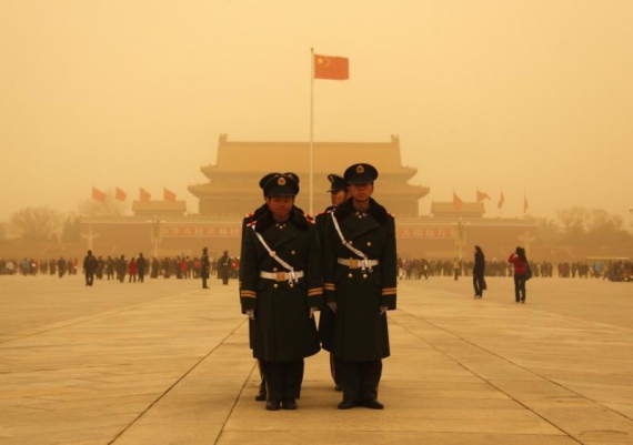 Столицу Китая вновь накрыл пылевой фронт. В желтом мареве утонули дома и деревья, видимость резко снизилась. Пекинское метеобюро предупредило жителей об ухудшении состояния атмосферы, порекомендовав без необходимости не выходить на улицу.