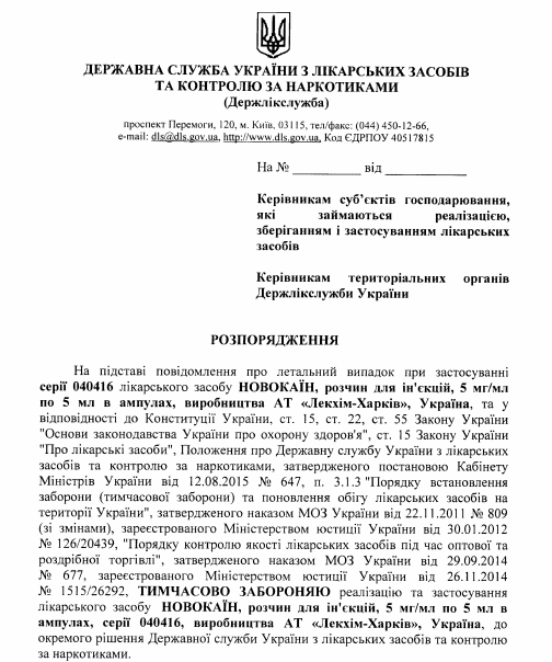 В частности, по всей территории Украины приостановлена реализация растворов для инъекций: