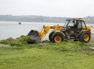 Массы водорослей, которые стали причиной смерти почти полсотни кабанов, расчистили вдоль французского побережья в Сен-Мишель-ан-Грев в северной Бретани.