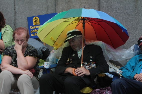 Пятеро чернобыльцев объявили голодовку под зданием правительства еще 1 июля. Требуют решения их вопросов относительно пересчета пенсий и выделения квартир и земельных участков, в очереди на которые люди стоят более 20 лет.