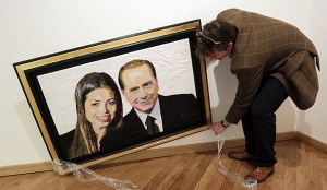 Портрет, на котором изображены премьер-министр Италии Сильвио Берлускони и одна из его предполагаемых любовниц, юная марокканская танцовщица Карима эль-Маруг по прозвищу Руби, выставлен на аукцион.