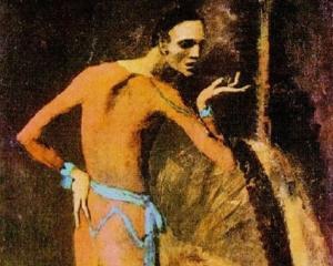 Картина "Актер", изображающая странствующего акробата, получила повреждение: разрыв холста длиной около 15 см в нижнем правом углу полотна.