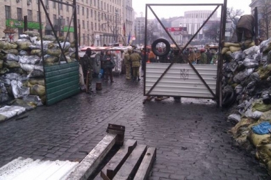 17 февраля 2014 года митингующие установили между двумя баррикадами на Грушевского 3-метровые металлические ворота.
