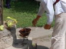 Далее обрядодей Спас, а в миру Станислав, проводивший прославления, кладет на небольшой костер мясо вепря. Это животные Перуна. Для других богов родноверы приносят в жертву хлеб или муку.