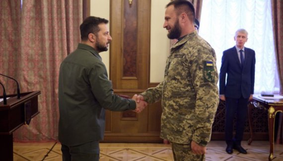 "Весь народ защищает государство от полномасштабной агрессии Российской Федерации. И те, кто решил посвятить жизнь служению государству с оружием в руках. И те, кто в своей жизни до 24 февраля получил разные профессии, занимался разными делами. Но тем не менее взял в руки оружие и вместе со всеми родами войск ВСУ выгоняет захватчиков с нашей земли", – сказал Зеленский.