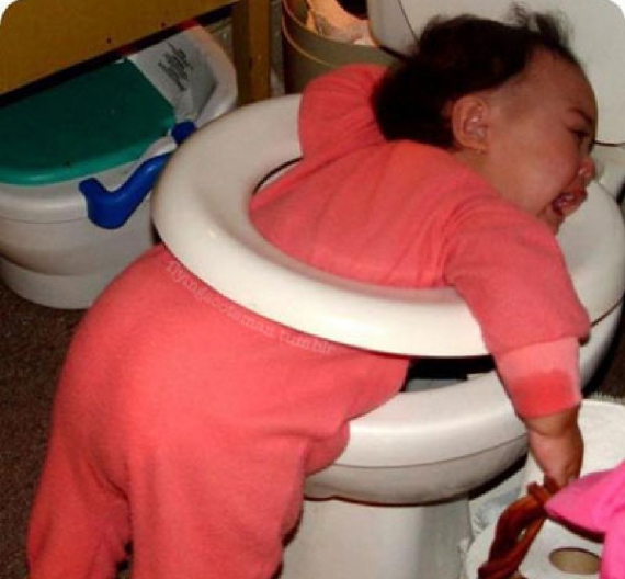 Много снимков связано с "туалетным юмором". Одного папашу кто-то успел заснять в туалете возле писсуара - пока он делает свои дела, сидящая у него на плечах маленькая дочка с интересом наблюдает за процессом сверху.
