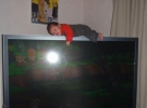 Как показывают фотографии, "дети и техника" - еще одна актуальная фантазия родителей. Одного крошечного малыша положили на ребро большого телевизора, двух девочек постарше (впрочем, судя по всему, к их огромному восторгу) посадили в барабан стиральной машины.