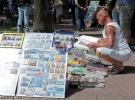 "День Киева для меня - культовой праздник. Мы с подружками каждый день ходим смотреть на мастеров Андреевского. Там, знаете, дух особенный. Это уже традиция. А в этом году - ужасно. Всех моих любимых мастеров нет. Ежегодно сюда приезжали вышивальщицы из Западной Украины, гончары, а сегодня их нет. Сами перекупщики стоят", - говорит киевлянка Татьяна Теслюк.