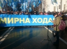 У здания парламента несколько десятков автомобилей перекрыли движение по ул. Грушевского. Водители включили аварийные сигналы. Рядом проходит мирное шествие.