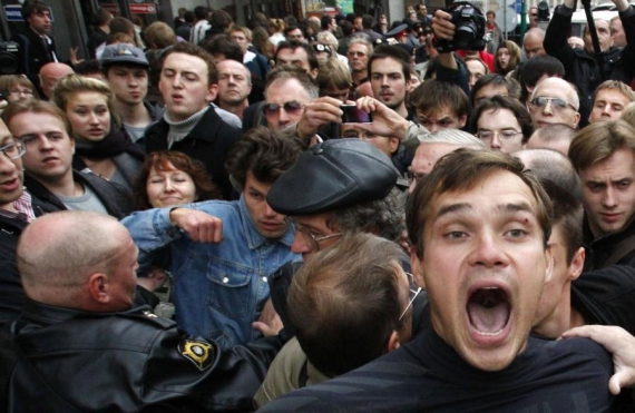 На Триумфальной площади в Москве задержали оппозиционеров, вышедших на несанкционированный митинг в поддержку тридцать первой статье Конституции. Одними из задержанных оказались Борис Немцов и Эдуард Лимонов.