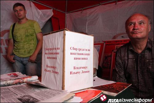 Активисты столичных райкомов Коммунистической партии Украины уже на протяжении нескольких суток днем и ночью несут дежурство у поврежденного памятника Ленину в Киеве.