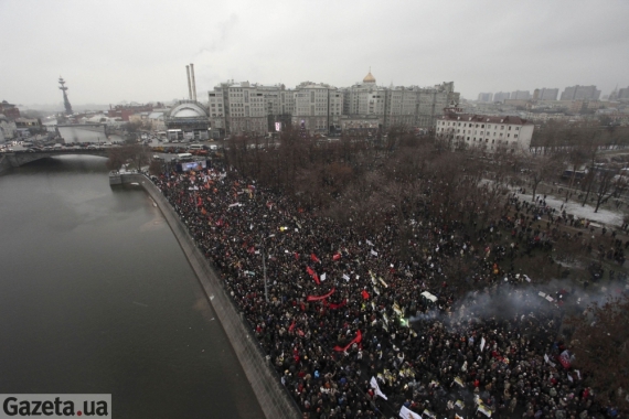 Ранее ГУ МВД по Москве сообщало, что на Болотной площади по состоянию на 13:00 по киевскому времени собралось около 20 тыс. человек. Еще 5 тыс. человек находятся на прилегающей территории. Организаторы митинга утверждают, что на акцию протеста пришли порядка 120 тыс. человек.