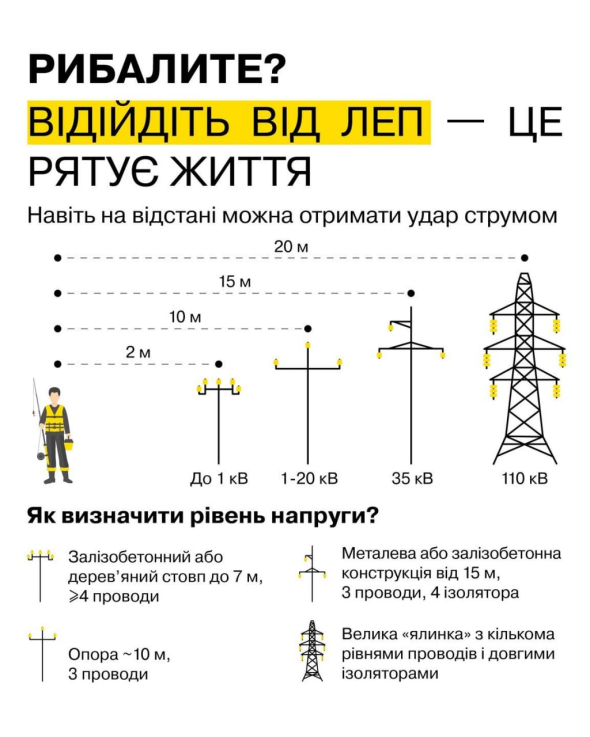 ДТЭК Киевские региональные электросети призывает жителей быть осторожными во время рыбалки вблизи линий электропередач.