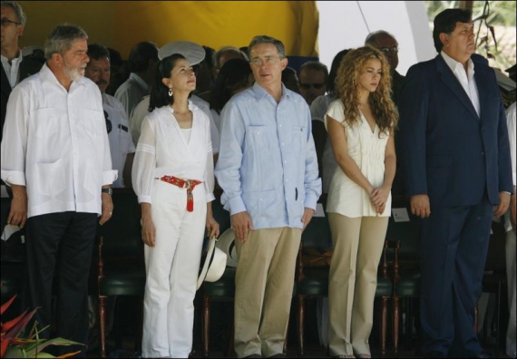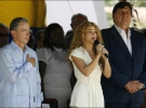 Известная колумбийская певица Шакира открыла митинг исполнением национального гимна и призвала колумбийских повстанцев немедленно освободить всех удерживаемых заложников.
