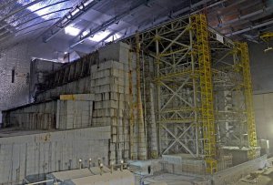 ВВ сети появилась фотография, на которой видно, как выглядит разрушенный энергоблок Чернобыльской атомной станции под аркой "Укрытие".