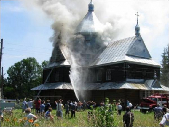 В Косове (Ивано-Франковская область) сгорела деревянная церковь Василия Великого Украинской греко-католической церкви (УГКЦ).По данным пресс-службы МЧС, силами 8 отделений Государственной пожарной охраны МЧС пожар был ликвидирован. В результате ЧП пострадал работник, который красил кровлю храма. Он с ожогами 2 - 3 степеней был госпитализирован. Причина пожара устанавливается.