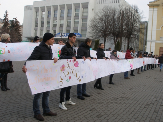 "Мы любим Винницу!", "Мы за развитие молодежи!" - Выкрикивали участники флеш-моба несколько раз.