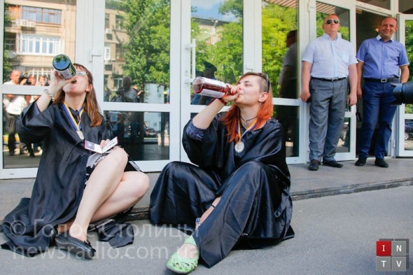 Под стенами вуза собрались две группы молодых людей - те, что поддерживают "Свободу" и те, которые выступают против проведения лекции Фарион. Всего - несколько десятков человек. Они полчаса перекрикивались друг друга своими лозунгами.